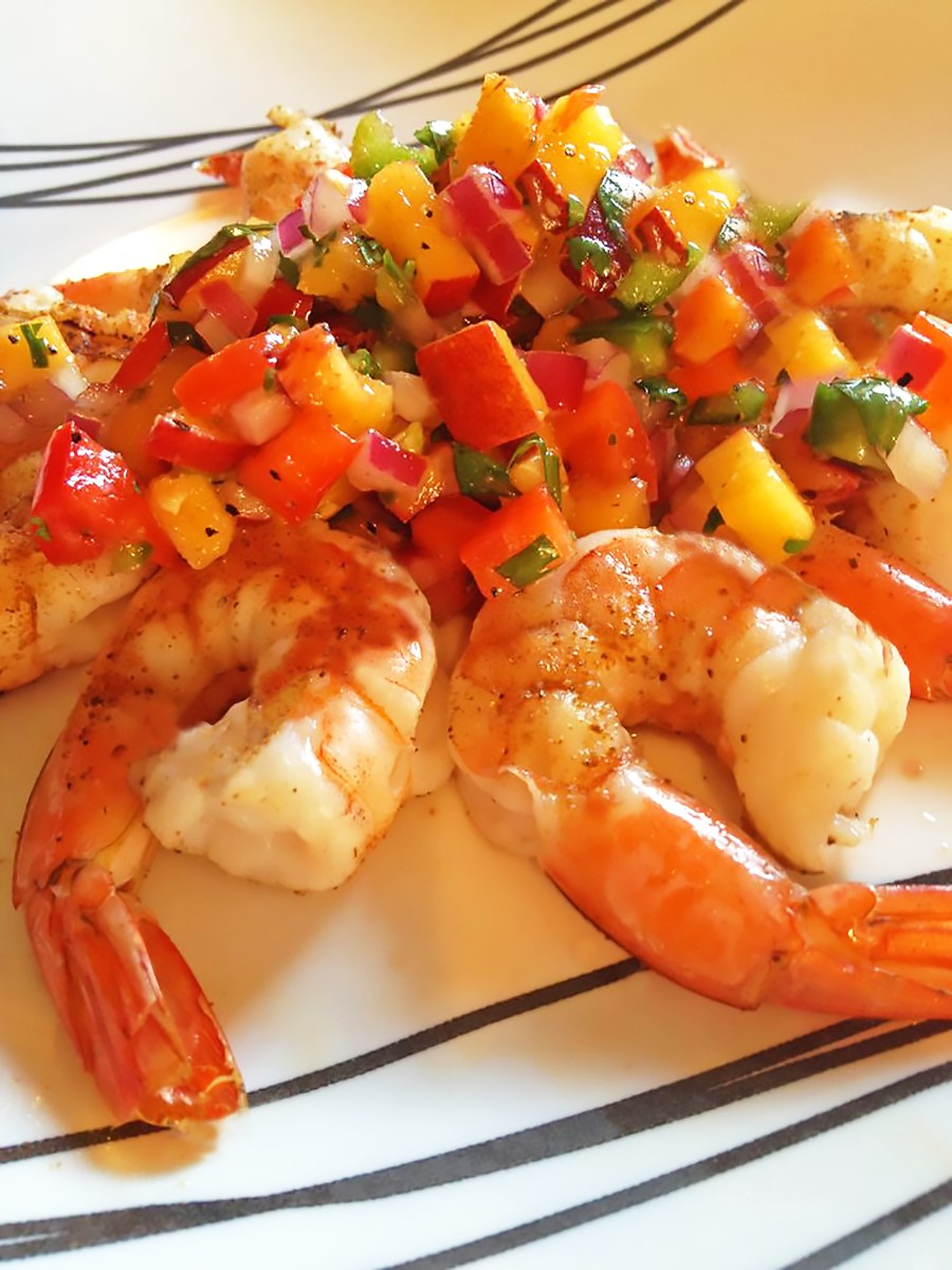 The fresh sweet and spicy flavors of this salsa are a perfect accompaniment to the savory grilled shrimp.