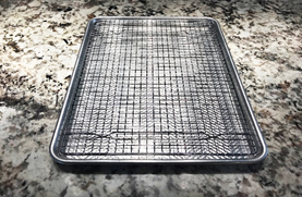 The rack raises the food off the bottom of the baking sheet, allowing hot air to circulate around the food causing the breading to become nice and crispy. Also, because the food is not laying on a flat sheet the bottom of the breading doesn’t become soggy.