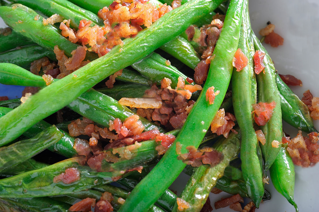 1 ½ lbs. fresh French green beans, washed and trimmed4 slices center-cut bacon
